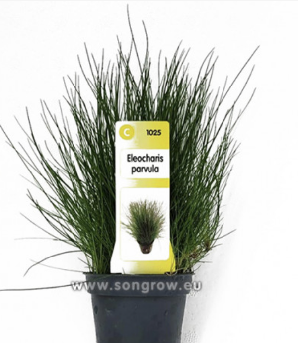 "De eleocharis parvulus is een prachtig grasachtig plantje waarmee je de voorgrond heel mooi kunt bedekken. Dit doe je door kleine plukjes gras te poten met een pincet, met kleine tussenruimtes. De plantjes maken scheutjes en op die manier zal snel een graslandje ontstaan. Eleocharis houdt wel van licht en voeding en niet al te warm water."